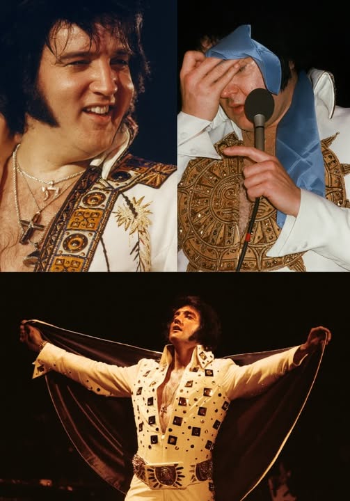 Those words, humble yet powerful, revealed the essence of a man whose relationship with his audience went far beyond fame. By 1977, Elvis had nothing left to prove — but he still felt a duty to give. Every note that year was not just music; it was a farewell wrapped in gratitude. His concerts were not polished performances anymore, but moments of truth. His vulnerability, once hidden behind rhinestones and stage lights, was now visible — and strangely beautiful.