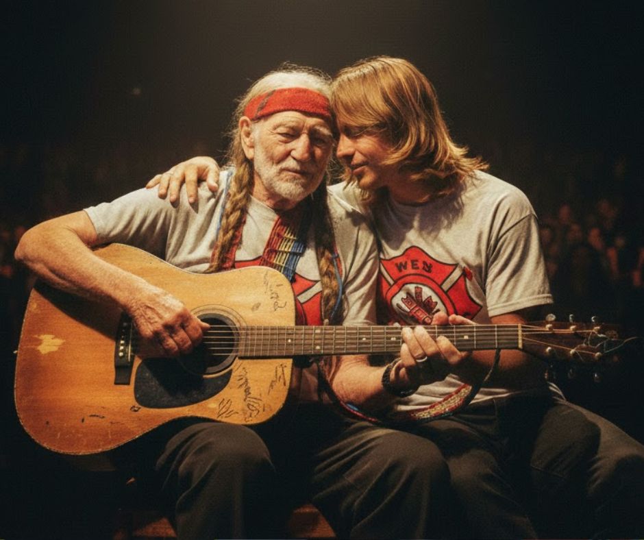 Those in the room say nobody moved. It wasn’t just a father speaking to a son. It was a legend handing over the weight of decades. It was country music passing from one set of hands to another. And when Willie placed Trigger into Lukas’s arms, the moment felt sacred — a final bow, a final blessing, and a final truth spoken by a man who has always said more with silence than others say with speeches.