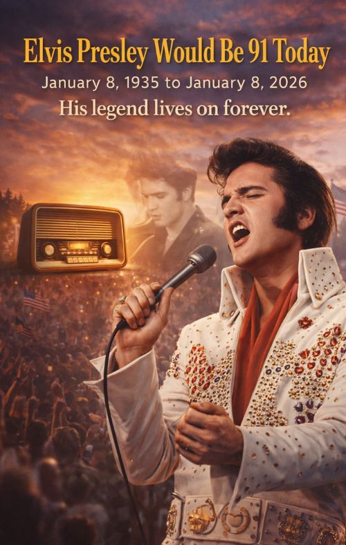 Some anniversaries come and go like calendar ink. Elvis Presley’s birthday doesn’t. It arrives with the quiet insistence of a familiar melody—something you don’t have to chase, because it has been living in the background of American life for so long. And when you read a line like “Remembering the King of Rock and Roll on his 91st birthday. Elvis Presley: January 8, 1935 – January 8, 2026. His legend lives on forever.” you realize the reason it still matters isn’t just history. It’s presence. Even for people who weren’t there in the beginning, Elvis still feels oddly nearby—like a voice that never fully left the room.