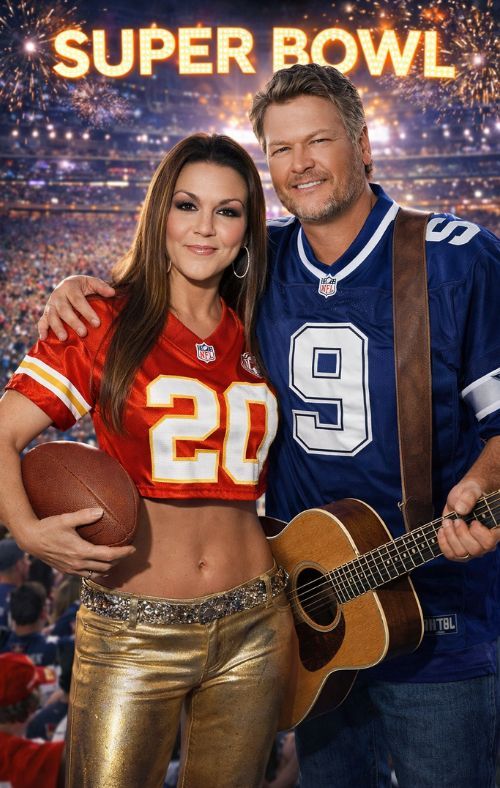 The headline practically writes itself in all caps: BREAKING NEWS: THE SUPER BOWL JUST GOT LOUDER! 🇺🇸—and whether or not every detail ends up official, the idea alone is enough to make country fans sit up straight. Because Gretchen Wilson and Blake Shelton represent two complementary strains of modern country power. Gretchen is grit and gasoline—raw vocal muscle, working-class swagger, the kind of delivery that sounds like it was born in honky-tonk neon. Blake, meanwhile, is the arena-sized storyteller with a wink—charismatic, steady, built for crowd control, and capable of turning a stadium into a singalong with one well-timed chorus.