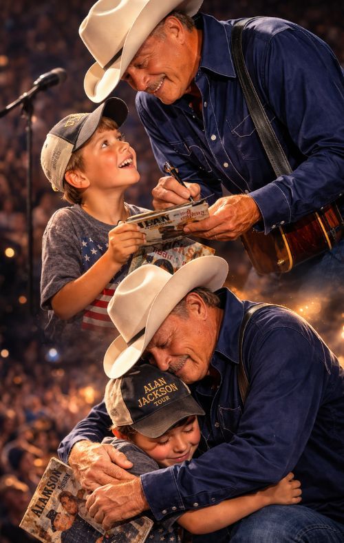 In that sense, “Alan Jackson Stepped Off the Stage — And One Fan Learned Why Country Music Still Feels Like Family” is about much more than a kind gesture during a concert. It is about the values that have sustained country music for generations: humility, warmth, memory, and human connection. The boy came hoping to be seen. Alan Jackson made sure he was. And in doing so, he reminded the entire arena that the most unforgettable part of a great concert is not always the loudest song. Sometimes, it is the quiet moment when a legend steps down from the stage and shows everyone that the music still belongs to the people who carry it in their hearts.