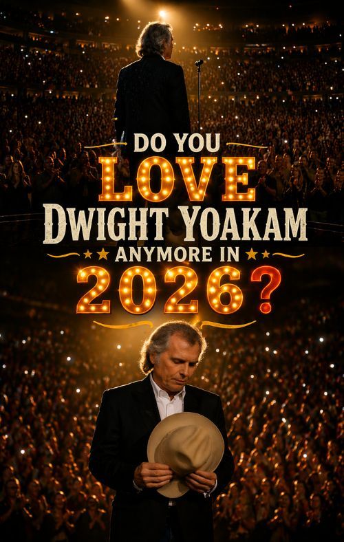 The image itself is striking. Dwight Yoakam steps onto the stage in 2026, and before a single note is played, before a lyric is offered, the room changes. The audience rises, not because they are being prompted to, not because the lighting has instructed them, and not because it is the expected gesture at a major concert. They rise because recognition arrives before the music does. In that instant, they are not merely welcoming a performer. They are acknowledging a man whose voice, style, and unmistakable presence have traveled beside them through decades of living.