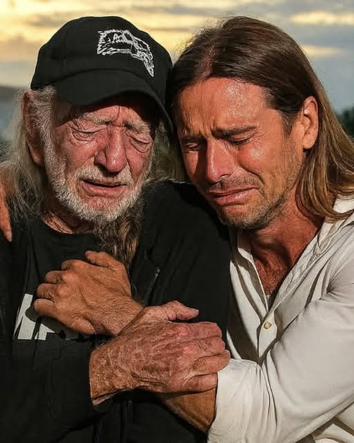 Beside him stood his son, Lukas Nelson—silent at first, then joining in harmony. There were no pyrotechnics, no polished stage effects. Just two generations of Nelsons, side by side, channeling something sacred through simple, raw sound. Each note carried the weight of years, each line echoed a lifetime of stories told under endless Texas skies.