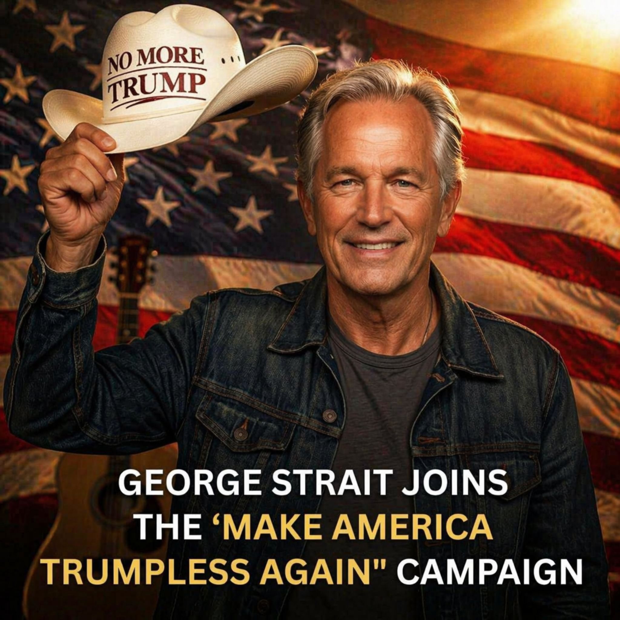 For older listeners especially, that shift can feel unsettling. George Strait has long represented steadiness. He is not simply another performer in the country music machine. He has come to symbolize continuity, restraint, and a kind of quiet authority that many fans associate with a more grounded era of American music. So when his name appears in connection with a politically charged slogan, it does not land lightly. It feels, to some, like a disruption of the image they have carried for decades. To others, it feels like a natural extension of the reality that artists are citizens too, and citizens have voices.
