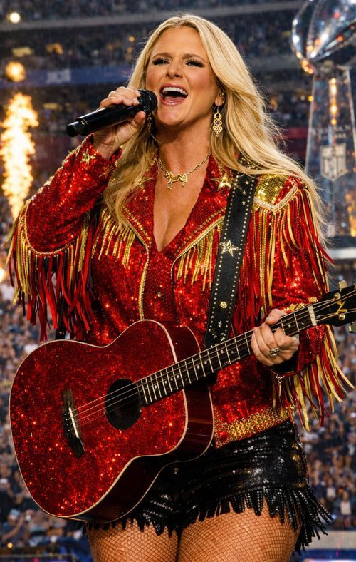For older, seasoned listeners—folks who remember when songs didn’t need a laser show to feel larger than life—Miranda Lambert on the Super Bowl halftime stage wouldn’t register as “another booking.” It would feel like a statement about what America still values when the lights are at their brightest. Miranda has never been an artist built from polish-first spectacle. She’s built from grit. From tight writing. From characters who feel like neighbors. From a voice that carries the hard-earned confidence of a woman who has lived enough to know what she means—and refuses to soften it just to fit the room.