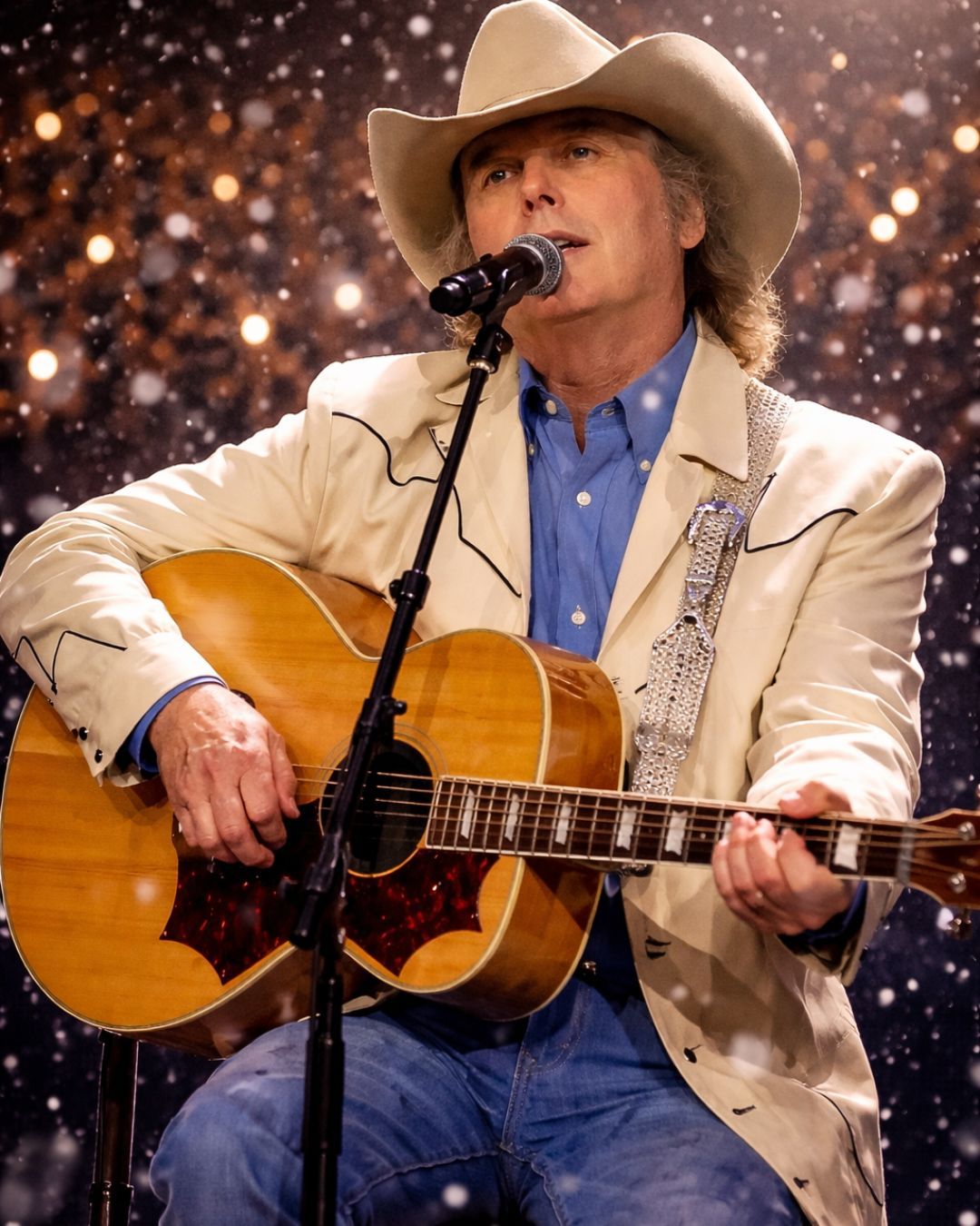 Dwight has always been an artist who understands restraint. Even at his most upbeat, there’s a certain control in the delivery—an awareness that the space between notes can speak as loudly as the notes themselves. So when the moment is framed like this—That’s the feeling in the room when Dwight Yoakam steps up to the mic.—you can almost see the scene: shoulders settling, conversations fading, that hush that only forms when a crowd senses something meaningful is about to happen.