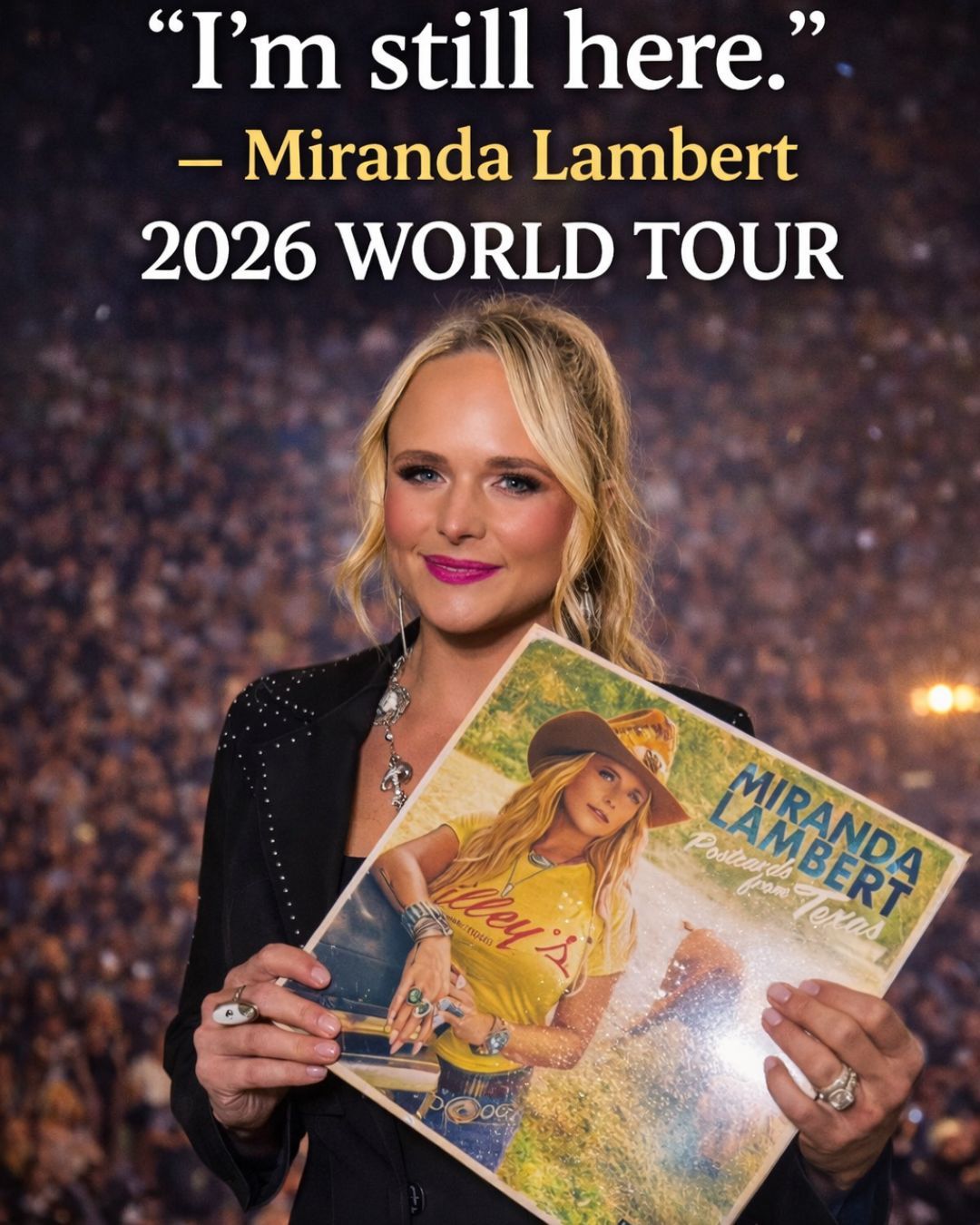 There are moments in music when a simple phrase carries the weight of a lifetime — and in the case of Miranda Lambert, those words are “I’m still here.” — Miranda Lambert. More than a declaration, it feels like a quiet, steady promise from an artist who has weathered storms, endured reinvention, and remained grounded in the values that shaped her earliest songs. As she announces her 2026 World Tour in celebration of twenty remarkable years in country music, Lambert isn’t just returning to the road — she is reflecting on resilience, artistry, and the unbroken bond between singer and audience.