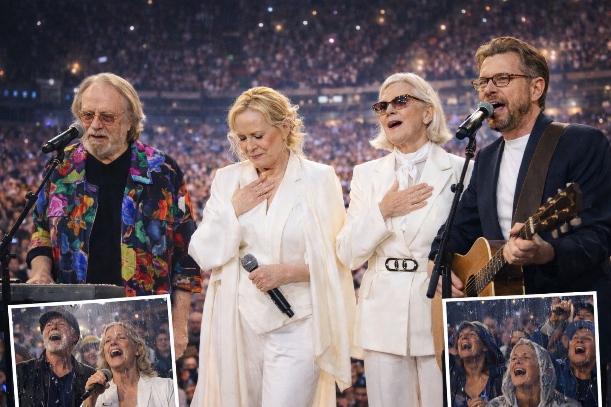 No cheers. Just tears. That detail is everything. Cheers would make it about spectacle. Singing makes it about love. It says, without speeches, “You gave us these songs. Tonight, we give them back.” And for ABBA—icons whose work has traveled across generations—the moment becomes the purest form of legacy: not the perfection of the performance, but the communion of voices when the song becomes too heavy, and the people carry it the rest of the way.