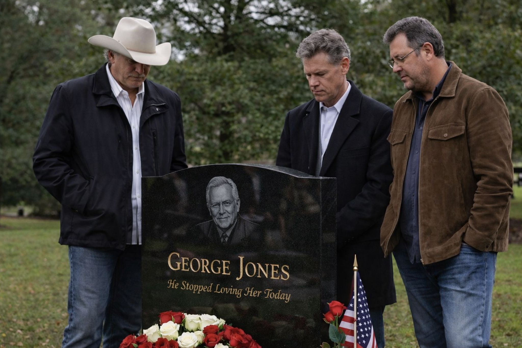 Each of those voices carries its own weight. Alan Jackson’s steadiness—never begging for attention, never rushing the line—has always sounded like a man who understands that sincerity is a skill. Vince Gill’s musicianship, so precise it can feel gentle, brings a kind of hush even when he’s singing loud. And Randy Travis—whose very presence in any conversation about country carries its own emotional history—represents endurance in the deepest sense: the cost of time, the cost of struggle, and the quiet dignity of still being here when the world thought you might not be. Put those men around George Jones’ greatest lament, and the result isn’t nostalgia.