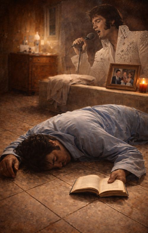 Some stories in music history don’t fade into the past—they harden into a kind of national memory, passed down like a family photograph that still makes the room go still. Few moments carry that weight more than On the morning of August 16, 1977, the man the world called a king was discovered face down on the bathroom floor at Graceland, the book he had been reading still in his hand. It was a quiet, lonely ending for someone who once commanded the world’s stage with fire in his voice and lightning in his soul.