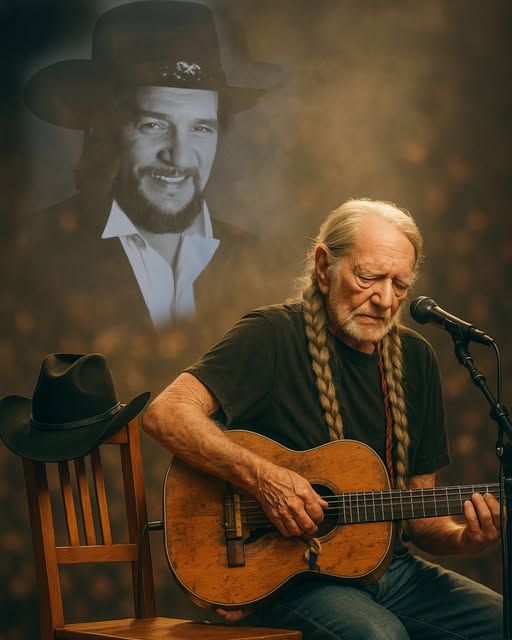 For decades, Willie and Waylon Jennings stood side by side as two pillars of country music’s outlaw movement — men who reshaped Nashville’s boundaries and gave the genre its rougher, truer edge. Their friendship was forged through years of music, late-night tours, and shared dreams that burned brighter than any spotlight. But this night, Willie stood alone, his weathered guitar slung across his shoulder, his heart heavier than the instrument he carried.