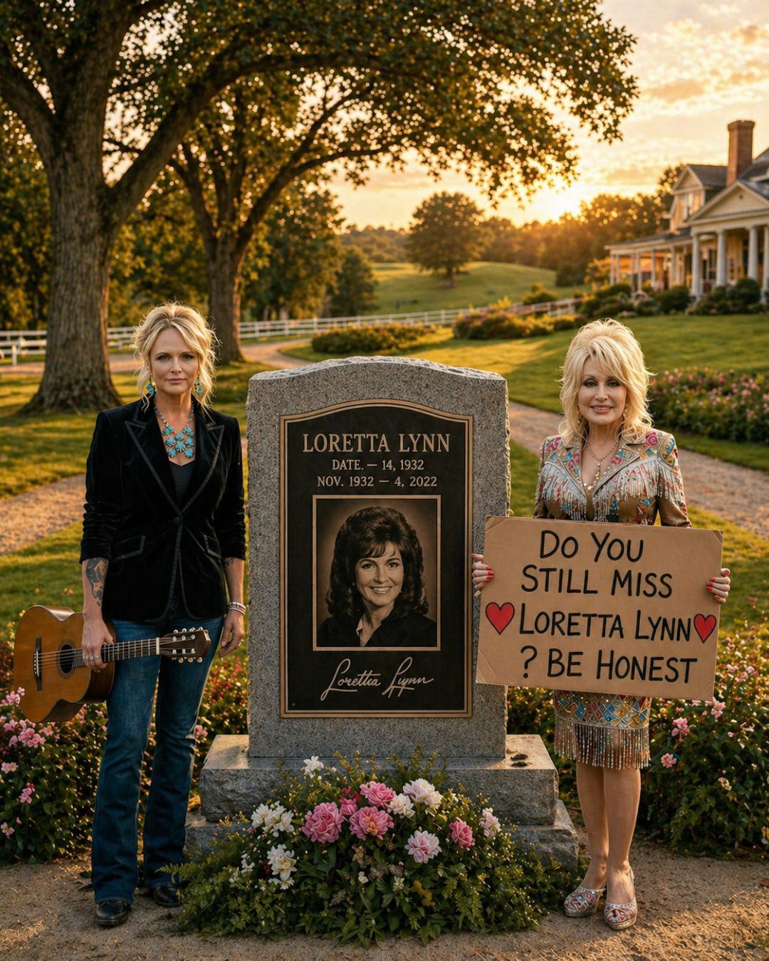 As Miranda gently placed flowers near Loretta’s resting place, the gesture would have said more than any speech. Beside her, Dolly stood quietly, her expression carrying love, memory, and deep respect. It was not a performance. It was remembrance. It was country music pausing long enough to honor one of its strongest roots.