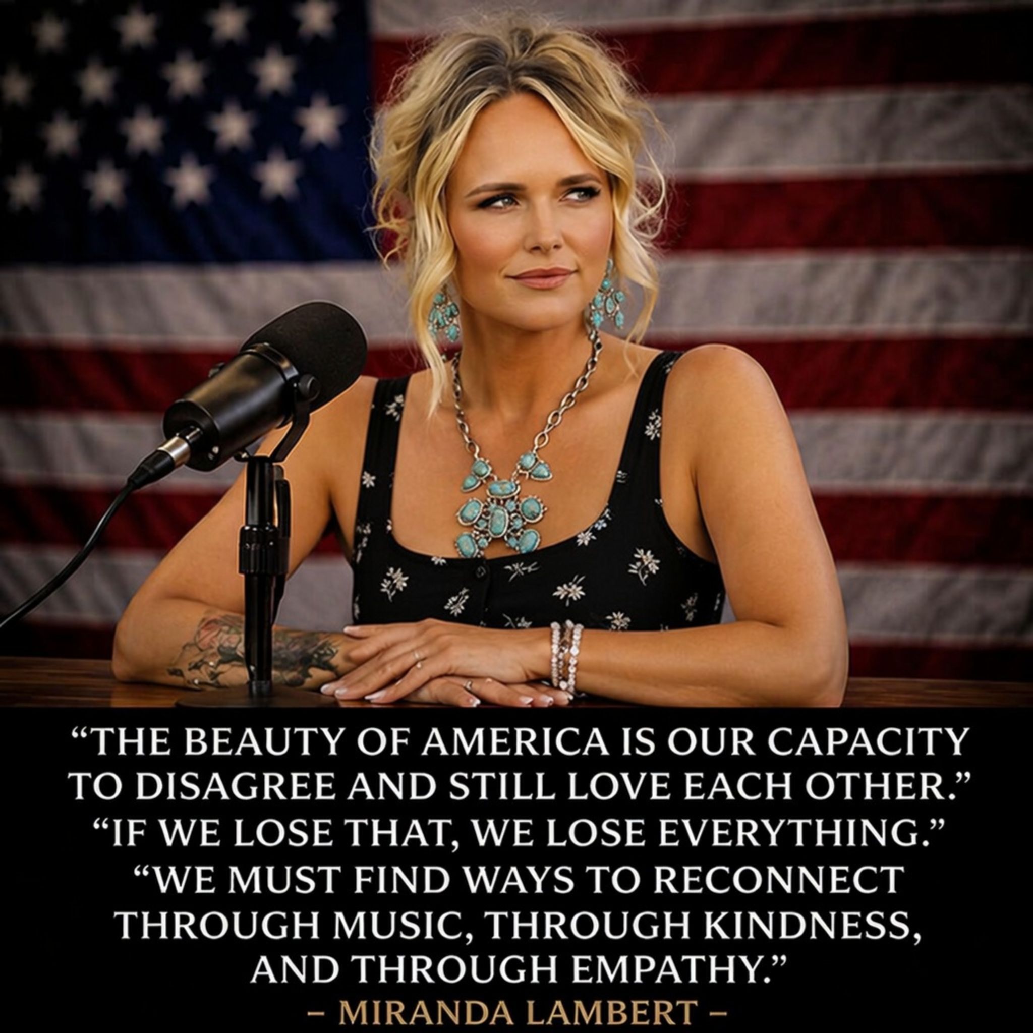 In the end, this interview seems to have reminded people why certain voices still matter beyond entertainment. Miranda Lambert was not just speaking as an artist, and not merely as a public figure. For a brief moment, she sounded like someone trying to protect something worth keeping. That is why the clip has lingered. Not because it was dramatic, but because it was steady. Not because it shouted, but because it spoke plainly. And sometimes, in a loud and fractured age, that is exactly the kind of voice a nation is most ready to hear.