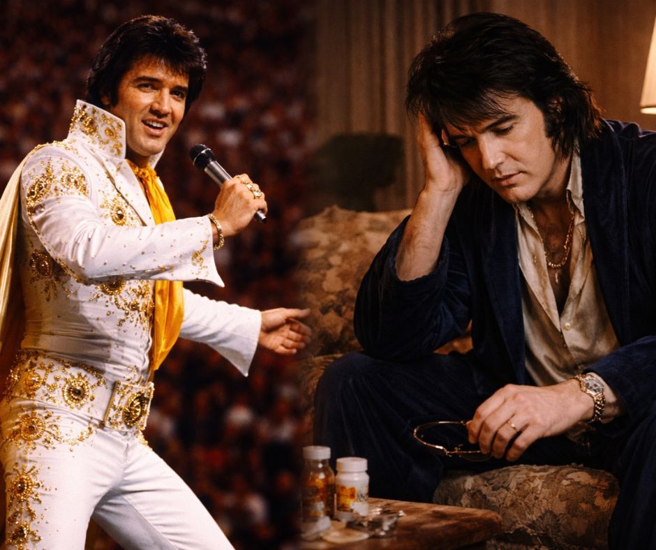 Elvis lived in a paradox. He could ignite a stadium, yet carry a silence within him that no applause could fill. And that is why the arc from triumph to quiet feels so haunting—because it reminds us that fame doesn’t cancel pain; it often disguises it. When we think of Elvis at the height of his spectacle—capes, scarves, the grand gestures—it’s tempting to imagine that confidence as permanent. Yet time has a way of revealing what the spotlight can’t: fragility, strain, and the simple human need to be seen as more than a legend.