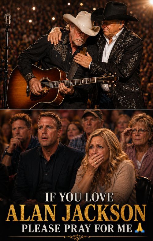 There are moments in country music when a song becomes larger than the stage, larger than the lights, and larger than the performance itself. “WHEN ALAN JACKSON STAGGERED… GEORGE STRAIT STEPPED FORWARD — AND COUNTRY MUSIC HELD ITS BREATH” captures that kind of moment — quiet, emotional, and unforgettable.