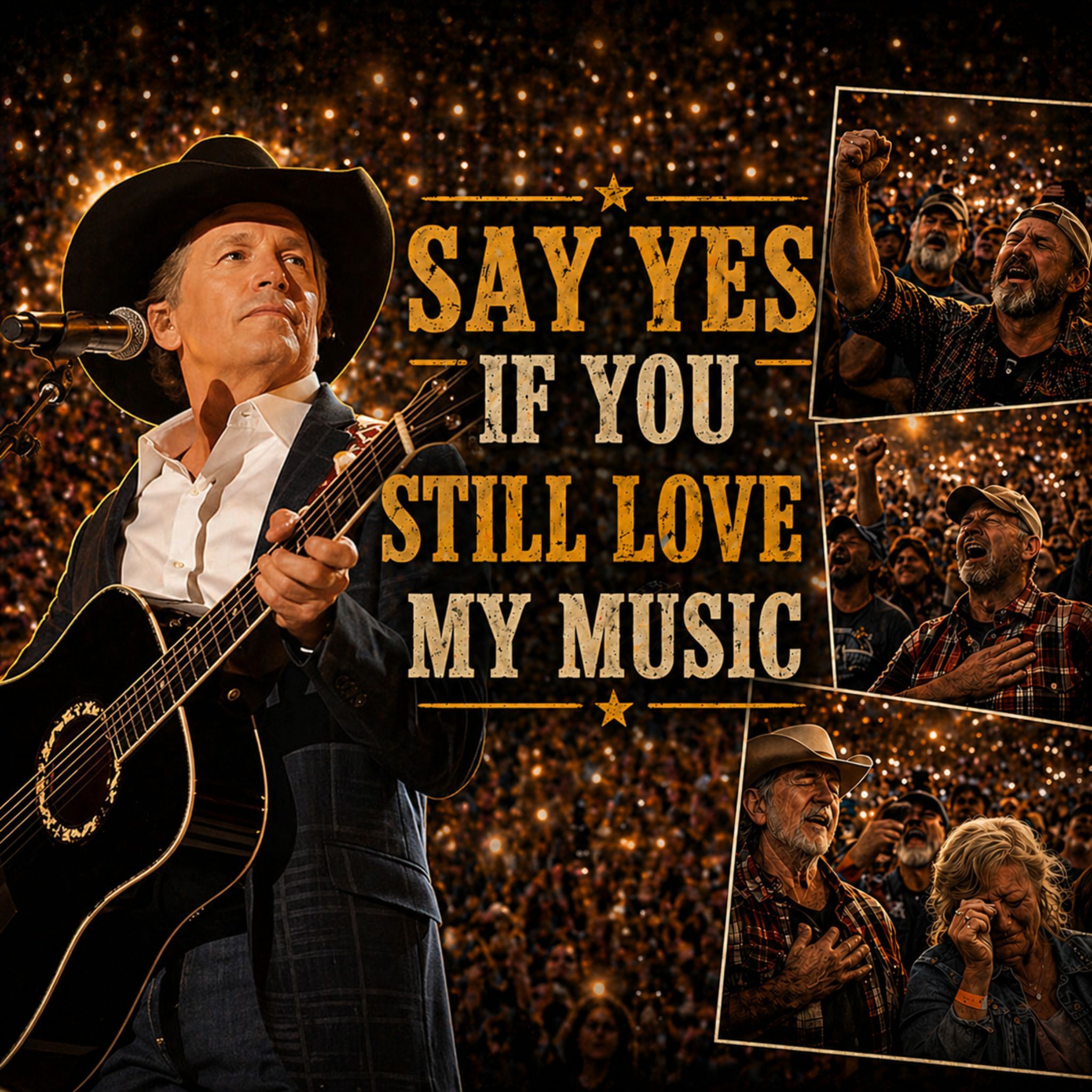 For older country fans, this imagined scene carries special weight. George Strait’s songs have accompanied courtships, marriages, heartbreaks, family drives, dance halls, rodeo nights, quiet kitchens, and long stretches of American life. His music has never felt temporary. It feels woven into memory. When fans sing back to him, they are not simply repeating lyrics. They are returning pieces of their own lives.