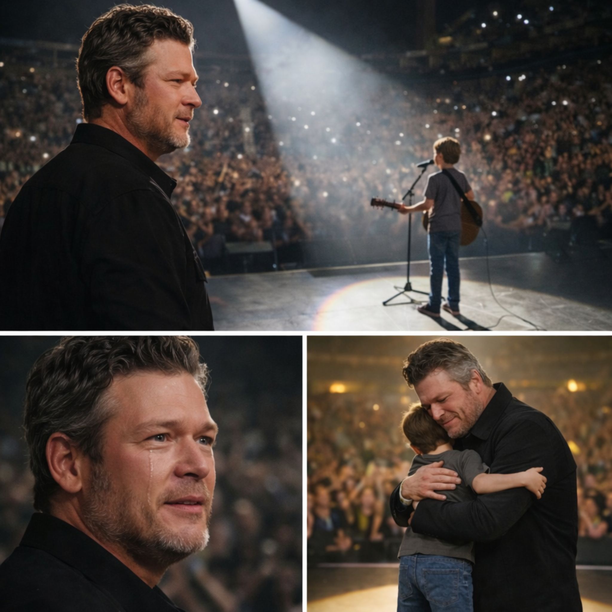 There are moments in music when spectacle suddenly loses its power, and something far smaller becomes far more unforgettable. “When Blake Shelton Stepped Back — And a 9-Year-Old Walked Into the Spotlight” is one of those moments. It does not sound like the setup for a grand arena finale. In fact, that is exactly why it feels so powerful. In a world where big shows are usually built on volume, timing, and polished emotion, this moment appears to have moved in the opposite direction. It became unforgettable not because it was louder than everything around it, but because it was quieter, more fragile, and unmistakably real.