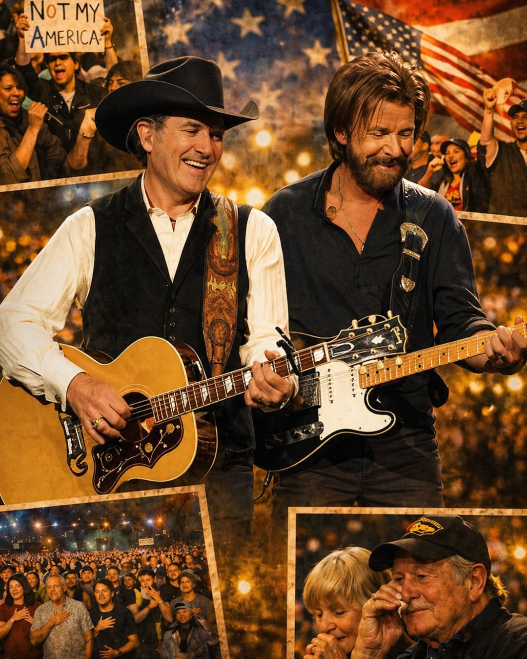 Brooks & Dunn have always understood the strength of country music when it is rooted in real life. Their songs are not built only for applause. They are built for people who have worked hard, loved deeply, lost something important, and kept moving anyway. That is why, when the atmosphere in the crowd reportedly grew uneasy, the most powerful response was not anger, argument, or spectacle. It was a song.