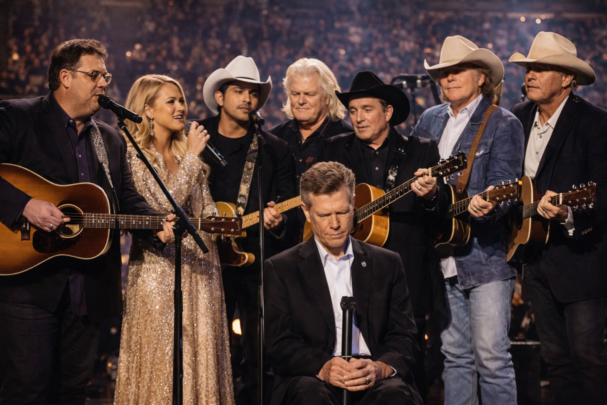 Then came the rush of names—Ricky Skaggs, Clint Black, Dwight Yoakam, Alan Jackson—not as “guest appearances,” but as chapters in a single story. Hit after hit, legend after legend, stitched together like a quilt the audience already knew by heart. It was loud, it was joyful, and it carried that unmistakable feeling of gratitude—like the genre was finally pausing long enough to honor its own spine.