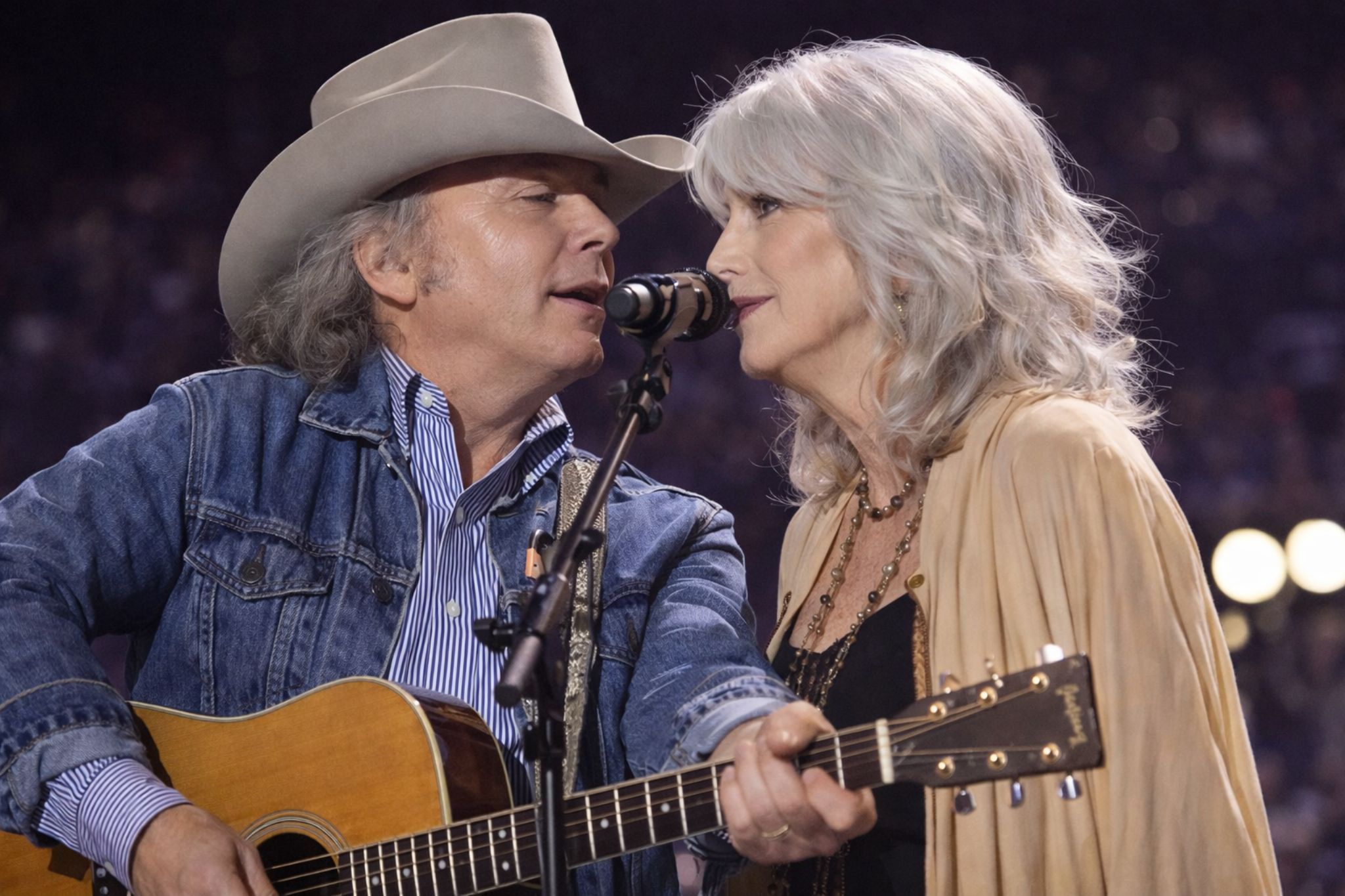 In front of 40,000 people, the power in your description isn’t the volume. It’s the restraint. Dwight “holding the silence” is a perfect detail, because that’s where truth lives in country music: in the spaces between lines, in the pauses that let the audience fill the song with their own history. And Emmylou’s entrance—luminous, calm, unhurried—feels like the kind of presence that can turn a stadium into a listening room. That’s her gift. She doesn’t force emotion. She invites it.