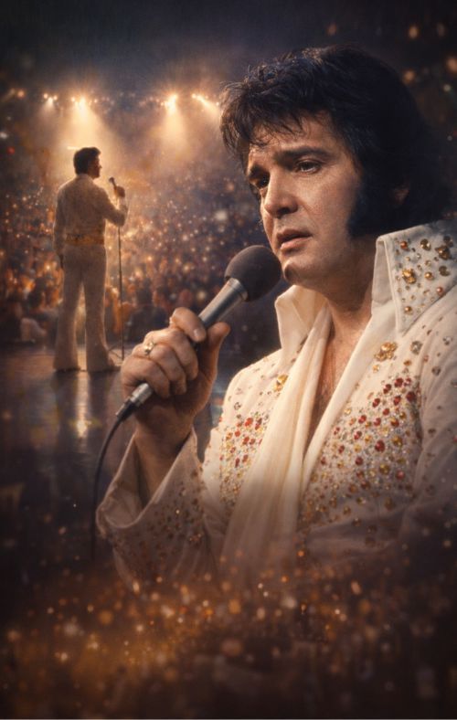 That line—“They came to see Elvis. I owe them that…”—captures the core of his late-period myth with painful clarity. Elvis always understood the bargain of the stage. It wasn’t only about applause. It was about responsibility: the shared belief that songs can lift a room, and that a singer—especially that singer—has the power to give people a memory strong enough to carry home. In the best accounts of Elvis’s final stretch, you hear this strange contrast: exhaustion alongside tenderness, vulnerability alongside a stubborn professionalism. Even a weakened voice could still carry traces of the old magic—phrases that suddenly bloom, moments where the timing is perfect, flashes of the King’s instincts returning like muscle memory.