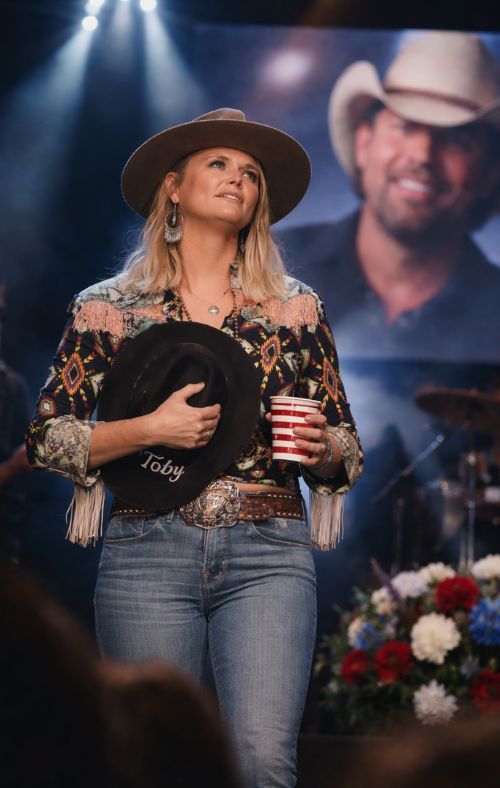 What made it powerful wasn’t that it referenced Toby’s catalog. It didn’t need to. It spoke to what remains when the voice is gone: the nights, the years, the snapshots you’d give anything to pause. By the second verse, the crowd wasn’t cheering. They were listening in the way people listen at a funeral—fully present, protective of the moment, unwilling to break it.