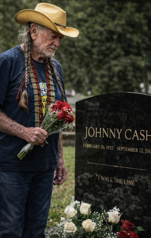 That is why “WHEN WILLIE NELSON SANG FOR JOHNNY CASH, THE ROOM FORGOT HOW TO BREATHE” feels so exact. Willie’s voice was never about perfection in the polished sense. It was about character. It carried age, wisdom, weariness, tenderness, and the kind of plainspoken grace that cannot be manufactured. In a tribute to Johnny Cash, that quality mattered more than anything else. Willie did not try to overpower grief or decorate it. He let it stand in the open. He sang with the restraint of a man who understood that some losses are too large for performance and must instead be approached with reverence.
