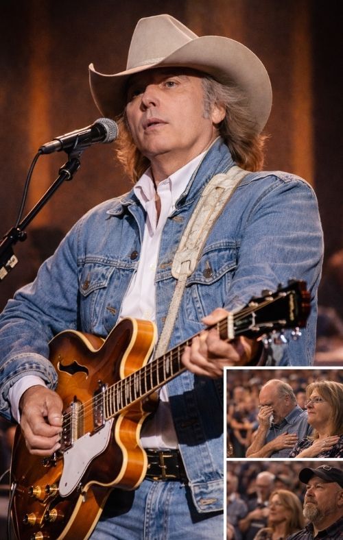 That’s the atmosphere where a moment like this becomes possible. Dwight Yoakam has always been his own kind of force—cool, sharp-edged, and unmistakably rooted in tradition while never sounding trapped by it. His voice can swing like honky-tonk steel one minute and land like a quiet confession the next. And because he’s never been the type to over-explain himself, any pause—any lingering silence—feels intentional. When he steps to the mic, people don’t just listen for the song. They listen for what’s underneath it.