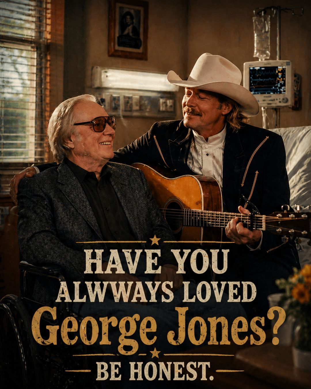 In a quiet hospital room, far from the glow of stage lights and the roar of sold-out crowds, Alan Jackson came to visit George Jones during the final chapter of a life that had shaped country music forever. It is the kind of moment that country fans understand without needing a grand explanation. The deepest respect in this music has never lived only in award shows, bright marquees, or standing ovations. It often lives in quiet rooms, in faithful visits, in the unspoken gratitude between artists who know what the road has cost.