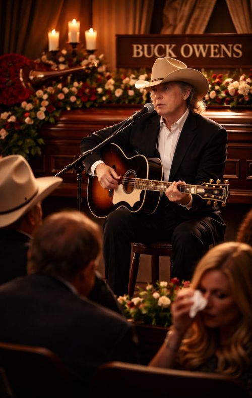There are funerals where silence says everything, and there are funerals where a song dares to say what silence cannot. In country music, the line between grief and song has always been thin. The genre was built, in many ways, for moments exactly like this — when sorrow is too old, too heavy, and too deeply understood to be dressed up in grand speeches. That is why WHEN DWIGHT YOAKAM SANG “ACT NATURALLY,” BUCK OWENS’ FUNERAL STOPPED FEELING LIKE GOODBYE — AND STARTED FEELING LIKE COUNTRY MUSIC REFUSING TO LET HIM GO feels so emotionally exact. It captures the rare kind of tribute that does not simply honor the dead. It makes the room feel, however briefly, as though the dead are not entirely gone.