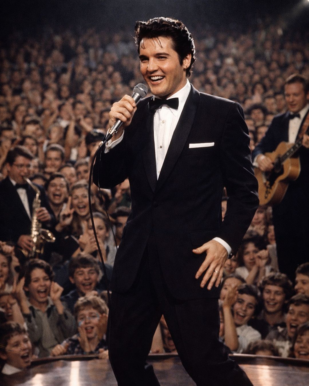 The genius of that moment begins with the image: Elvis stepping out in a tuxedo—clean, sharp, almost formal—when the world had grown used to thinking of him as pure danger in motion. That wardrobe choice mattered. It signaled control. It told America: the boy who once rattled televisions and scandalized commentators had grown into a man who could command a room without needing to shock it. For older listeners, this detail lands with special weight because it captures a timeless truth about show business: real power isn’t always loud. Sometimes it’s the calm confidence of someone who knows exactly who they are.