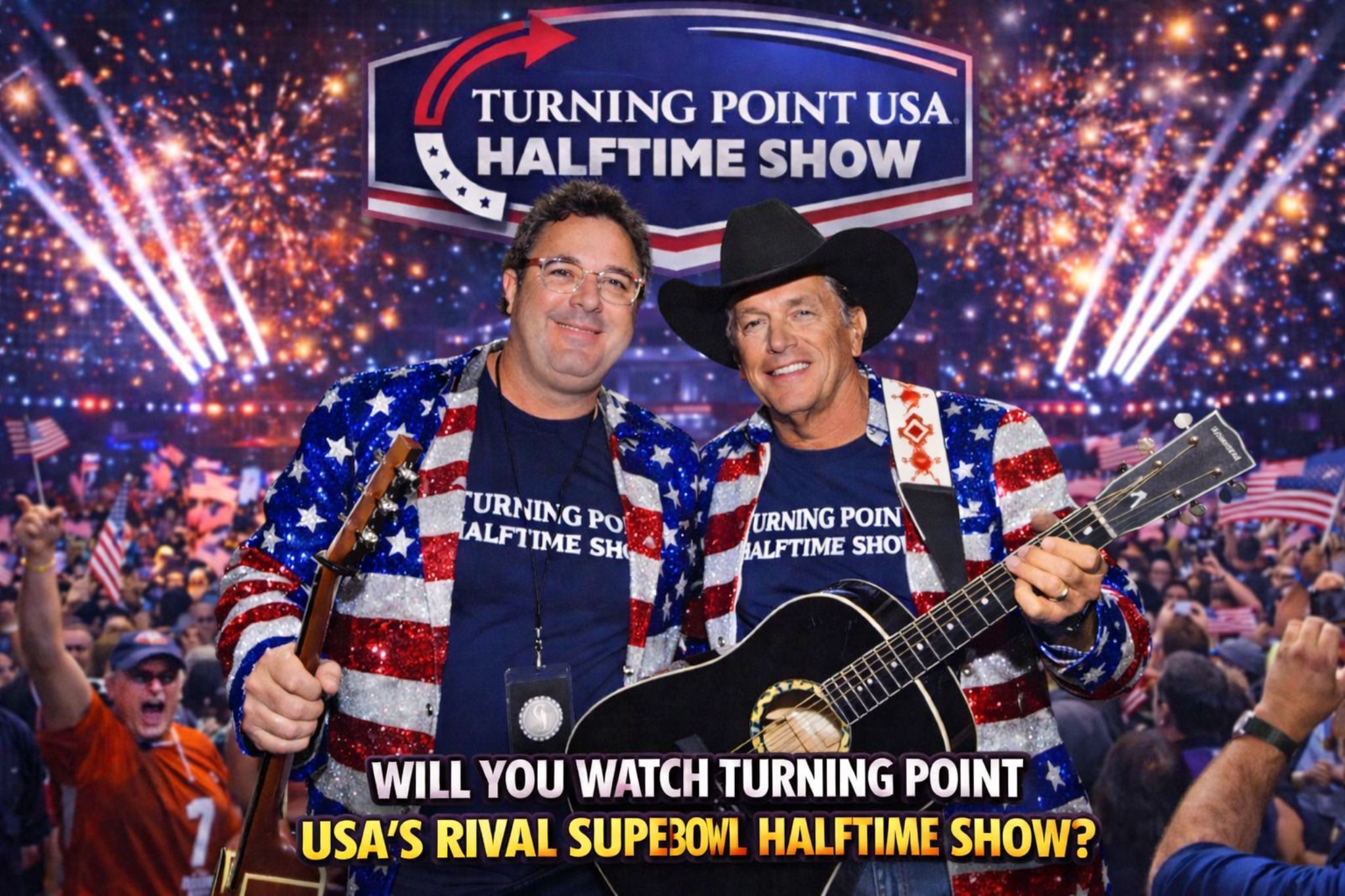 That’s why this particular whisper is traveling the way it is. Not like a press release. Not like a polished announcement. More like a secret that got too heavy to carry quietly: George Strait and Vince Gill—two names that don’t get paired by accident—reportedly being linked to what insiders are calling “The All-American Halftime Show.” No gimmicks. No chase for youth culture. Just legacy, restraint, and the kind of musical authority that older listeners recognize immediately, because they lived through eras when artists didn’t need spectacle to make history.