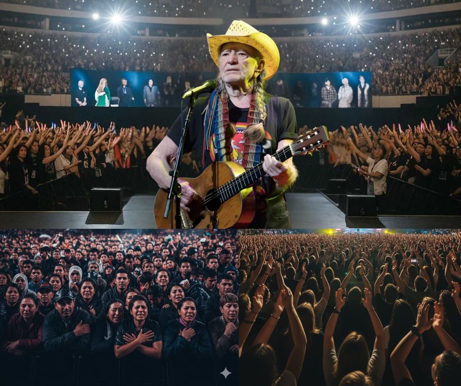 The crowd sang for him, with him — carrying every note, every memory, every piece of what Willie’s music has meant for half a century. When the chorus came, he smiled through the tears and whispered, “You finished the song for me.”