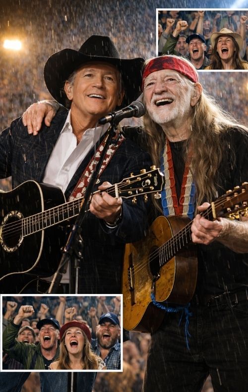 When 70,000 Voices Rose Through the Rain, George Strait & Willie Nelson Turned a Storm Into History