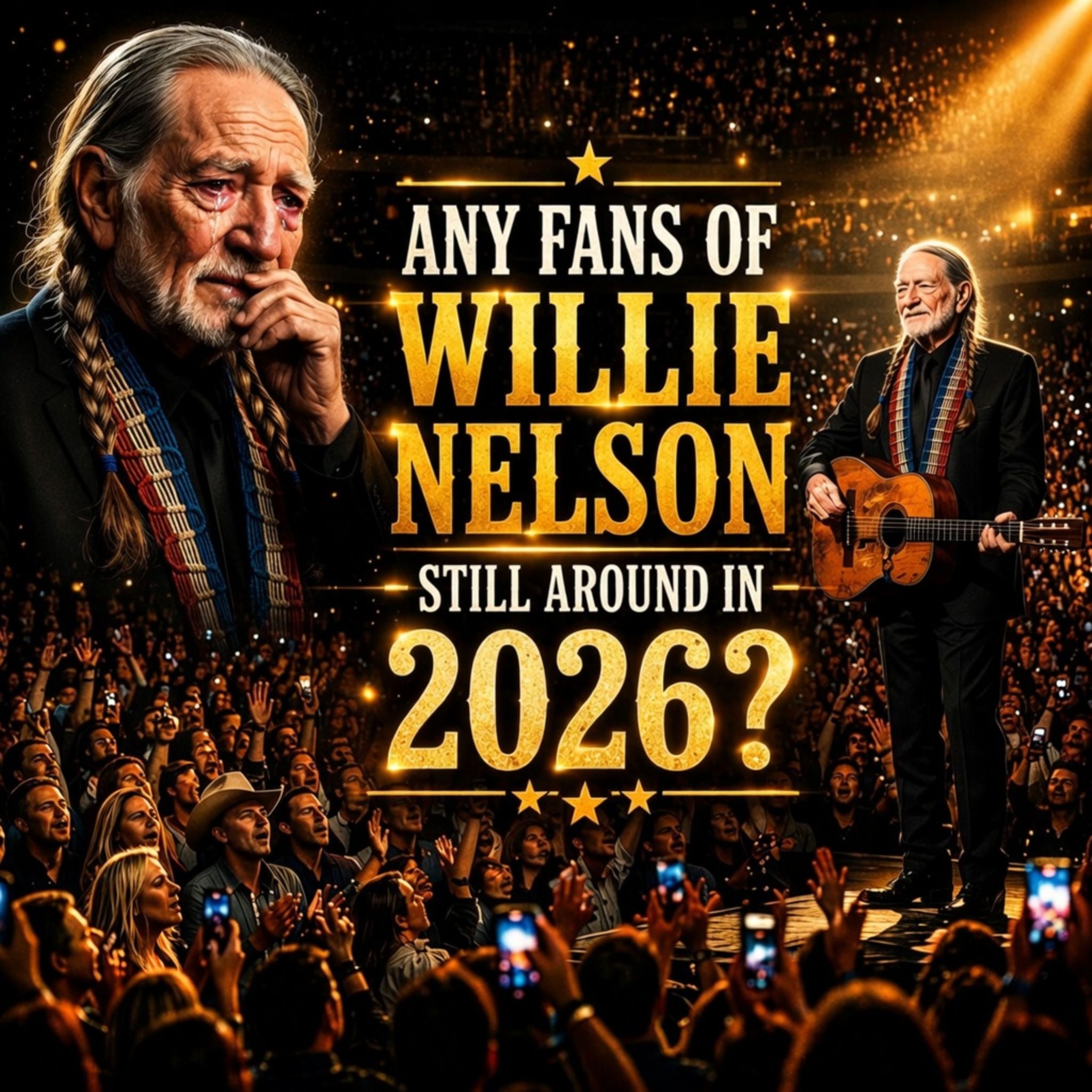 There is also something distinctly American in the emotional landscape of this scene. Willie Nelson has long stood as a symbol of artistic independence, humility, and deeply rooted storytelling. His music belongs to highways, small towns, front porches, old dance halls, family kitchens, and quiet drives at dusk. To imagine an arena full of people singing back to him is to imagine all of those places gathering into one voice. It is the sound of personal history becoming public gratitude.