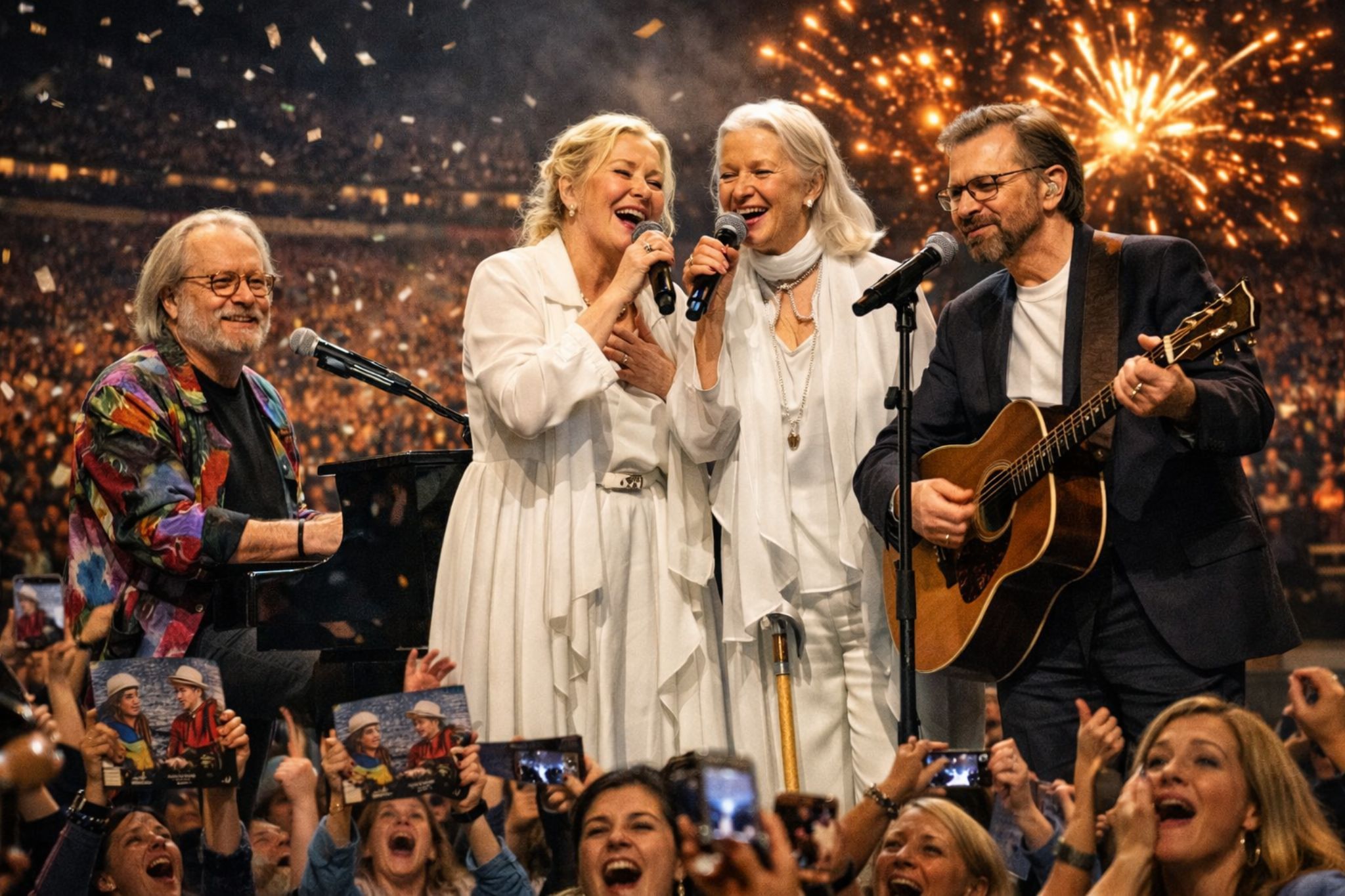 Golden lights washed over the crowd. Fireworks broke the sky. Yet the most powerful sound wasn’t the production—it was the singing. ABBA’s music hadn’t aged; it had multiplied, proving that great songs don’t belong to one generation. They belong to everyone who needs them.