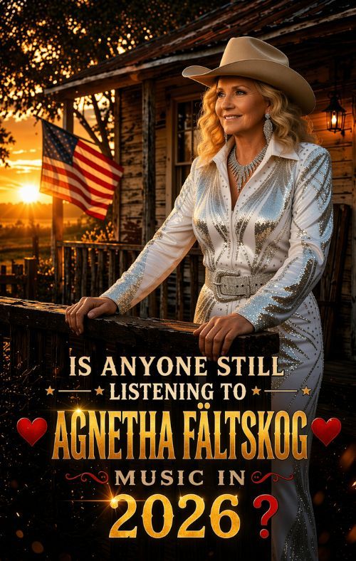 What makes this image so powerful is not only the sight of Agnetha Fältskog standing before a weather-worn house. It is everything that the moment seems to hold at once: youth and age, memory and distance, fame and simplicity, the glittering reach of a legendary career and the quiet place where that story first began. For millions of listeners, Agnetha has long been more than a famous voice. She has been part of the emotional language of an era. Her singing did not merely travel through radios and records. It lived inside people’s lives. It accompanied first loves, long winters, dances, departures, reunions, and the strange bittersweet ache that only certain voices seem able to awaken.