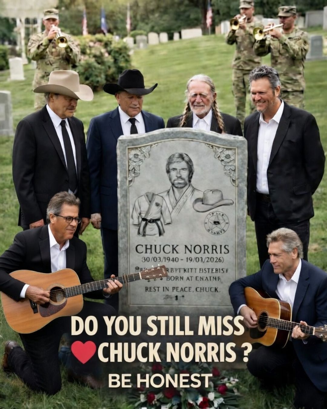 And yet, there is something quietly hopeful in the picture as well. The men gathered there are not only mourning. They are bearing witness. In their silence, they are affirming that such virtues still matter, even if the world has grown noisier and less patient. Willie Nelson’s weathered grace, George Strait’s steady dignity, Alan Jackson’s plainspoken honesty, Vince Gill’s gentleness, Blake Shelton’s rooted presence, Randy Travis’s enduring spirit—each one brings his own history to that graveside. Together, they remind the country that reverence itself is a form of memory. To stand still for a life like Chuck Norris’s is to refuse the idea that strength must now be loud to be seen.