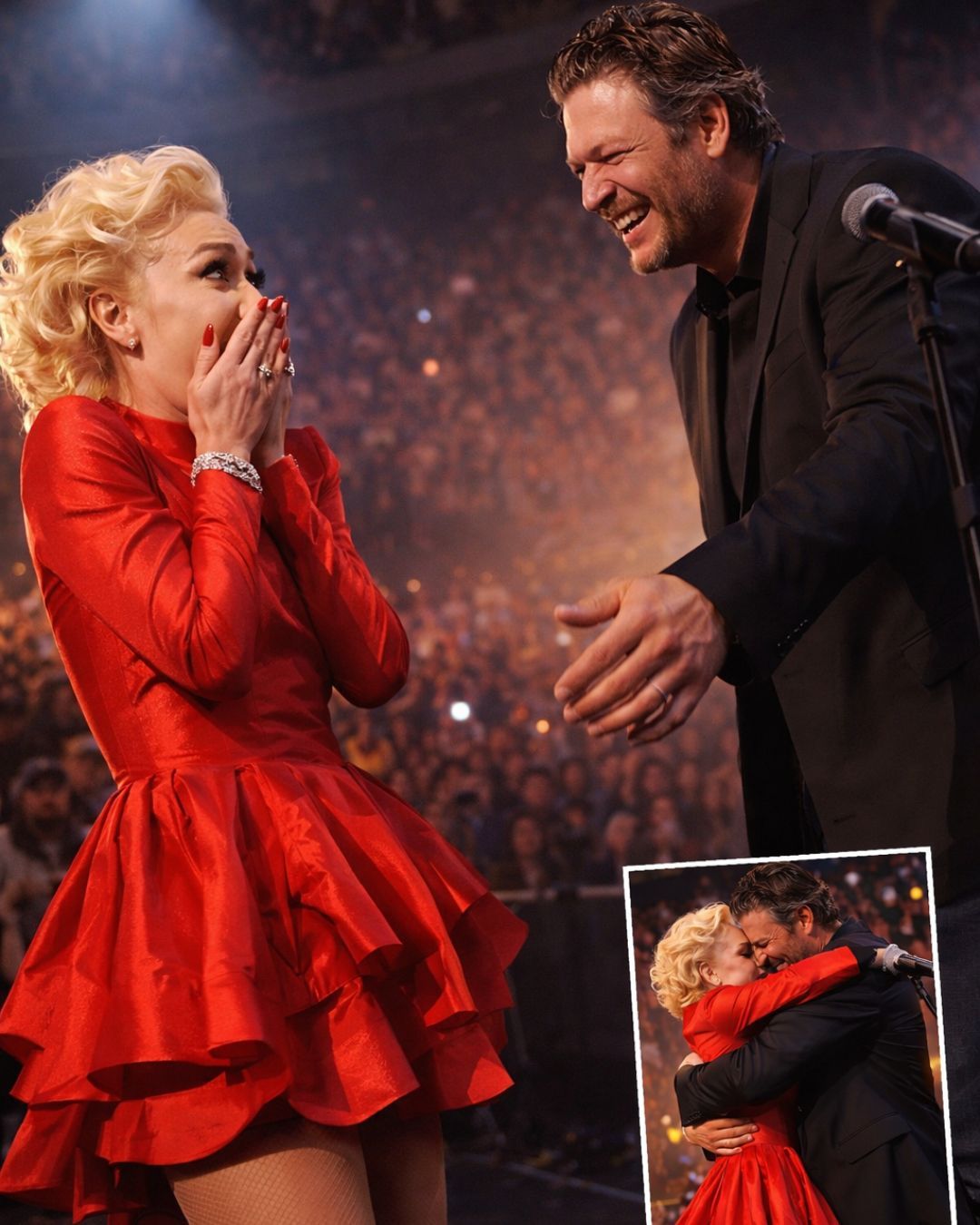 In the end, this is not simply a story about surprise. It is a story about interruption—about the way one unexpected step can transform a polished public moment into something personal and lasting. Gwen may have stood in the spotlight alone at first, but when Blake emerged from the shadows, the night itself changed shape. And for those who were there, that change likely did not feel like spectacle at all. It felt like truth arriving without warning, and staying just long enough to be unforgettable.