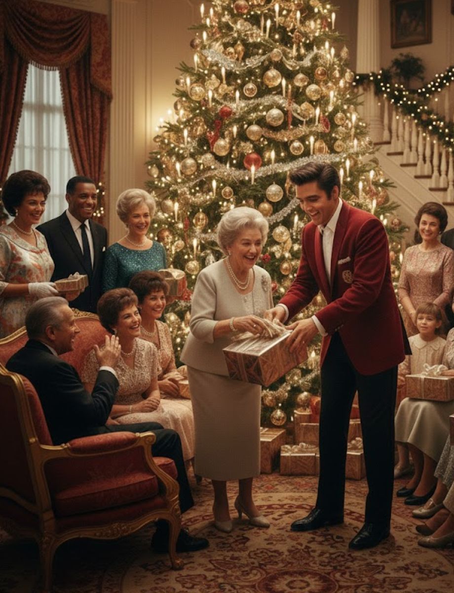 As family and friends gathered around the tree, Elvis would make a brief attempt to appear calm and dignified, as though he were hosting a formal occasion. But it never lasted. The first gift opened was all it took. Suddenly he was smiling wide, eyes bright, tearing into wrapping paper with childlike excitement. If someone hesitated too long, he could not resist leaning over, laughing, and helping them open the gift just to see their face.