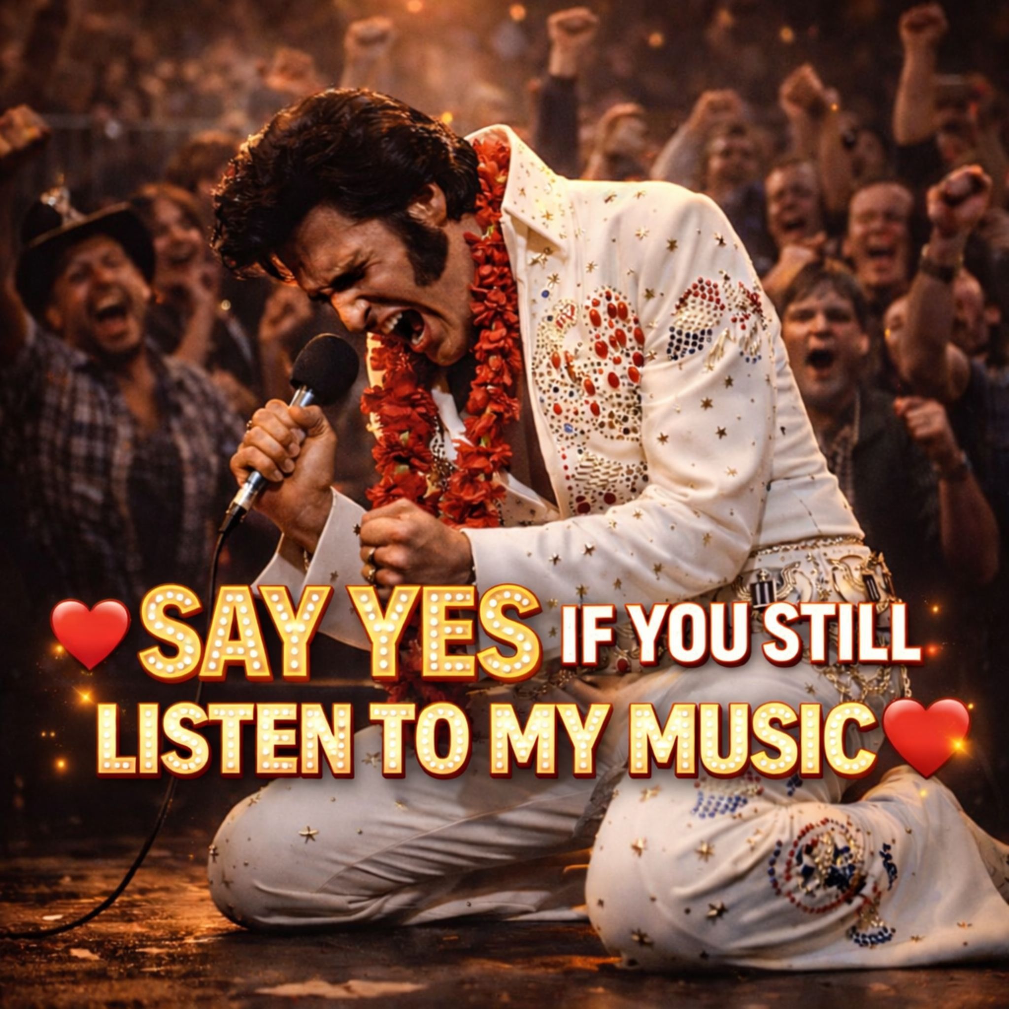 And that is why WHEN ELVIS FELL TO HIS KNEES IN HAWAII, THE WORLD REALIZED THE KING COULD STILL LEAVE THEM BREATHLESS remains such an unforgettable phrase. It points to a night when Elvis was not living on memory or reputation. He was actively reclaiming the room, the camera, and the imagination of millions. In one song, he transformed spectacle into testimony. He reminded the world that a crown is not kept by nostalgia alone. It is kept by moments of undeniable command—moments when the artist does something so powerful, so emotionally complete, that all anyone can do is watch in silence and remember why the title belonged to him in the first place.