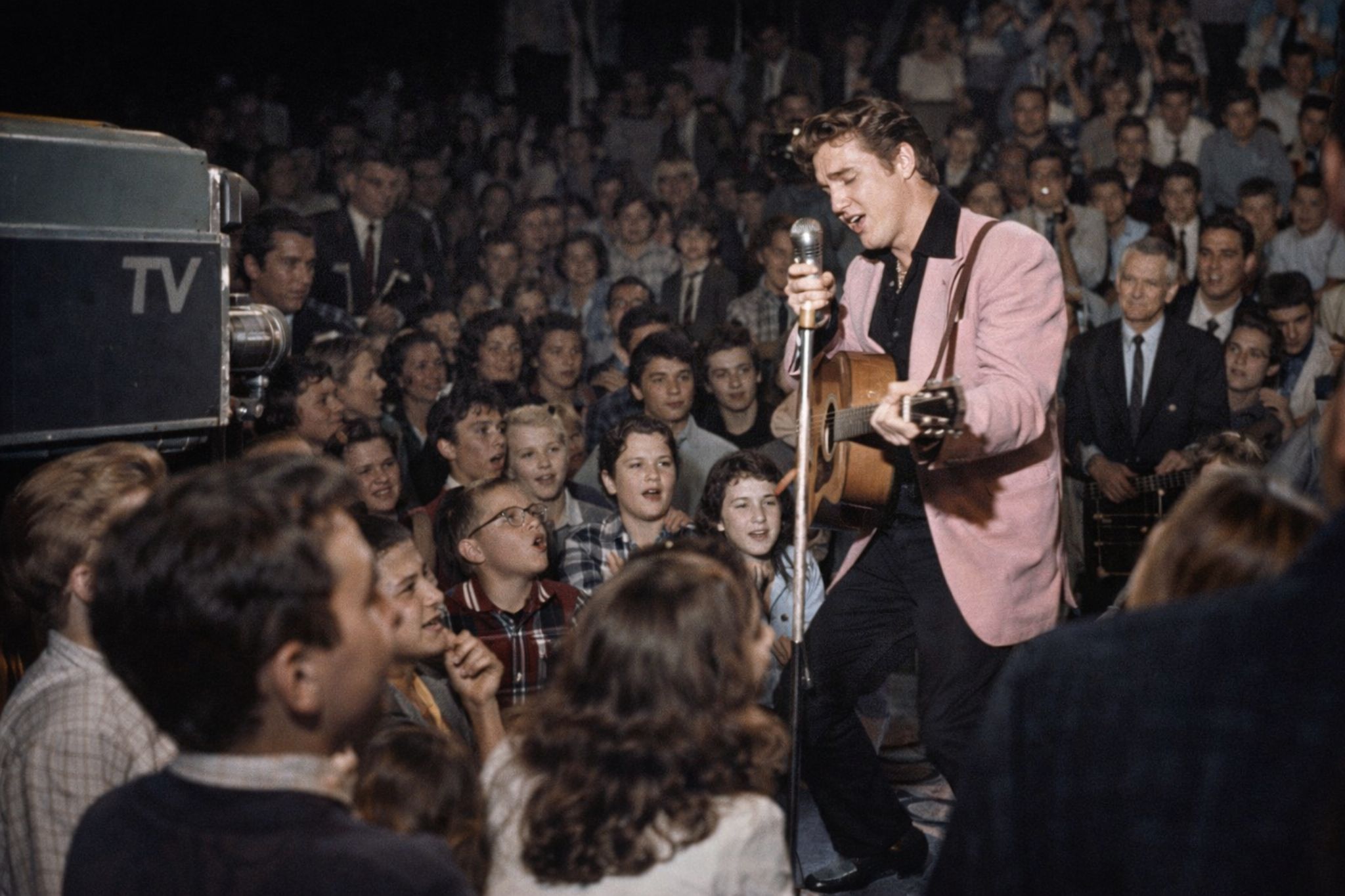 That wobble wasn’t only musical. It was emotional. It was generational. Parents didn’t just hear a singer—they heard a shift in power. Teenagers didn’t just hear a catchy song—they heard permission. When Elvis moved, the nation argued about it because the movement itself felt symbolic: confidence without apology, desire for life without asking the gatekeepers if it was respectable. In many living rooms, televisions weren’t just showing a performance; they were showing a new way of being, right there in the open. For some, it was thrilling. For others, it was frightening. Either way, it was irreversible.