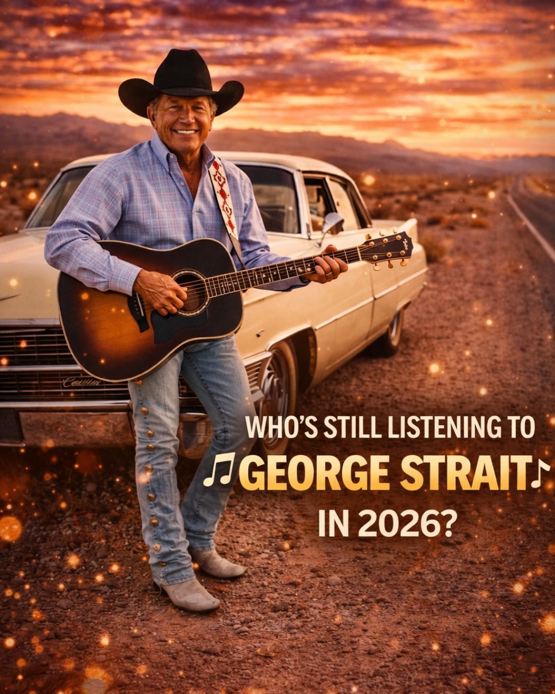 Some stories in country music don’t happen under bright stage lights. They happen far from arenas and applause, in the quiet spaces where a song can breathe without anyone watching. Somewhere on a lonely highway between Reno and nowhere, legend says George Strait once pulled his old Cadillac to the side of the road and stepped out into the desert night.