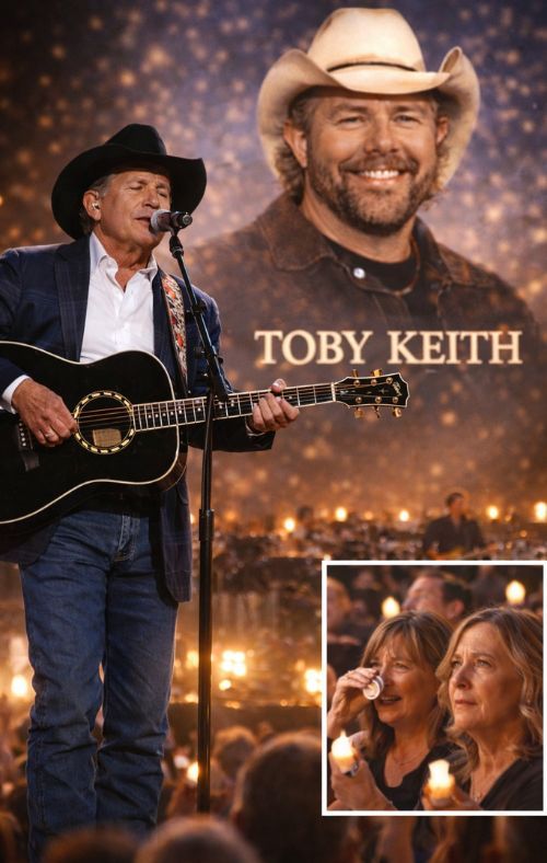 In country music, the loudest moments are not always the ones with the biggest production. Sometimes, the room changes because a singer chooses restraint—because a legend understands that grief doesn’t need decoration. That is why “The Night George Strait Sang for Toby Keith: When Tribute Became Testimony” lands with such force. It doesn’t read like a headline. It reads like a memory people are still trying to hold steady.