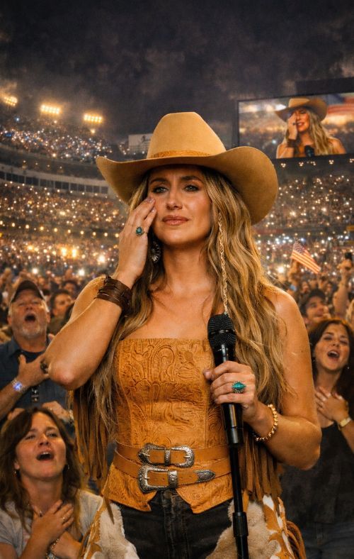 What makes this story unforgettable is not that she paused. It’s what happened next. The crowd didn’t fill the gap with chatter. They didn’t treat it like an awkward interruption. Instead, they stepped forward—together. A single line became a chorus. A chorus became a stadium-wide vow. The song kept moving, carried by strangers who sounded like family in the dark. In that instant, “When Lainey Wilson Couldn’t Sing—80,000 Voices Refused to Let Her Stand Alone” stopped being a headline and became a truth you could feel in your bones.