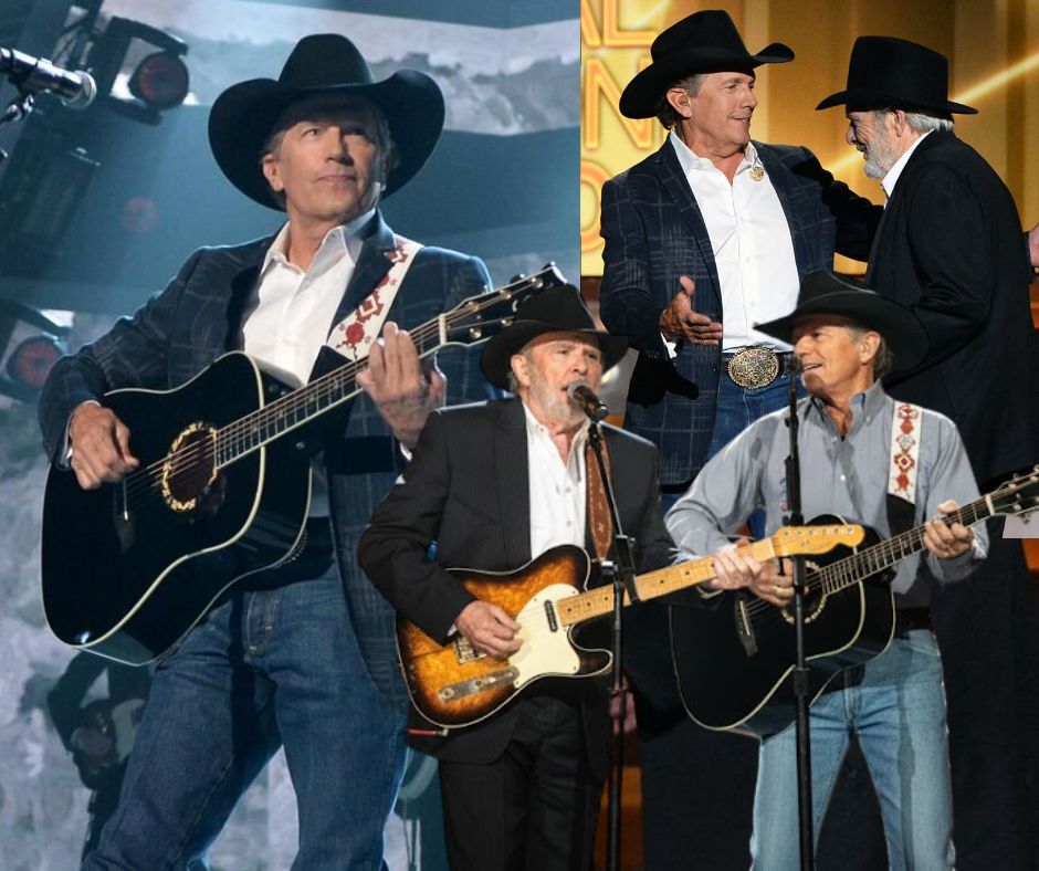 George, known for his humility, leaned in and admitted softly, “I wouldn’t be standing here if Merle hadn’t sung about the kind of men I grew up with.” It wasn’t a compliment crafted for a camera. It was gratitude spoken from one life to another. And Merle’s response — a simple grin, a familiar hat tip, and the words, “Then keep singing for them, son” — felt like a passing of a torch.