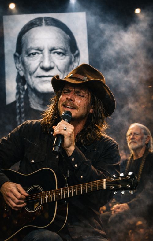 For longtime listeners, that image alone was enough to stir something profound. A son standing where his father once stood, singing a song so closely tied to Willie’s emotional legacy, was never going to feel ordinary. But what made the moment unforgettable was the way it unfolded. Lukas did not perform the song as imitation, nor did he try to compete with memory. He sang it with reverence, but also with his own soul fully inside it. That balance is rare. He did not borrow his father’s pain. He honored it. He let the song pass through him as both inheritance and offering.