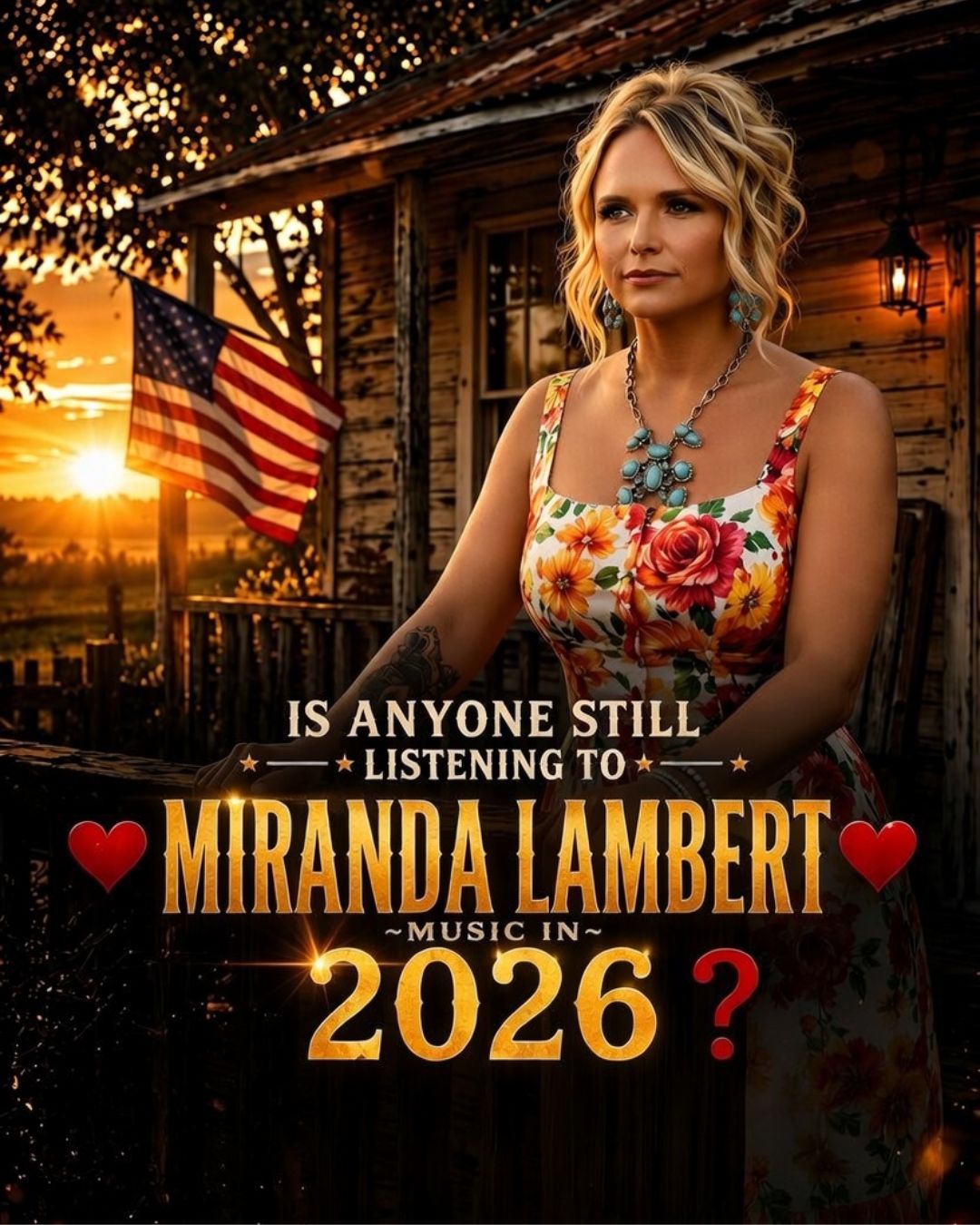 What makes this image so powerful is not merely that Miranda Lambert is standing before an old home. It is what Miranda Lambert has come to mean to listeners who have followed her through the years. She has never been an artist built on distance. Even when she sounded fearless, fiery, and untouchable, there was always something recognizably human beneath the strength. Her songs have carried defiance, heartbreak, wit, tenderness, and a kind of emotional honesty that country music values when it is at its best. She did not simply sing about life from afar. She sang from inside it. That is why this imagined return feels so moving. It brings the legend close enough for the heart to recognize the woman inside the name.