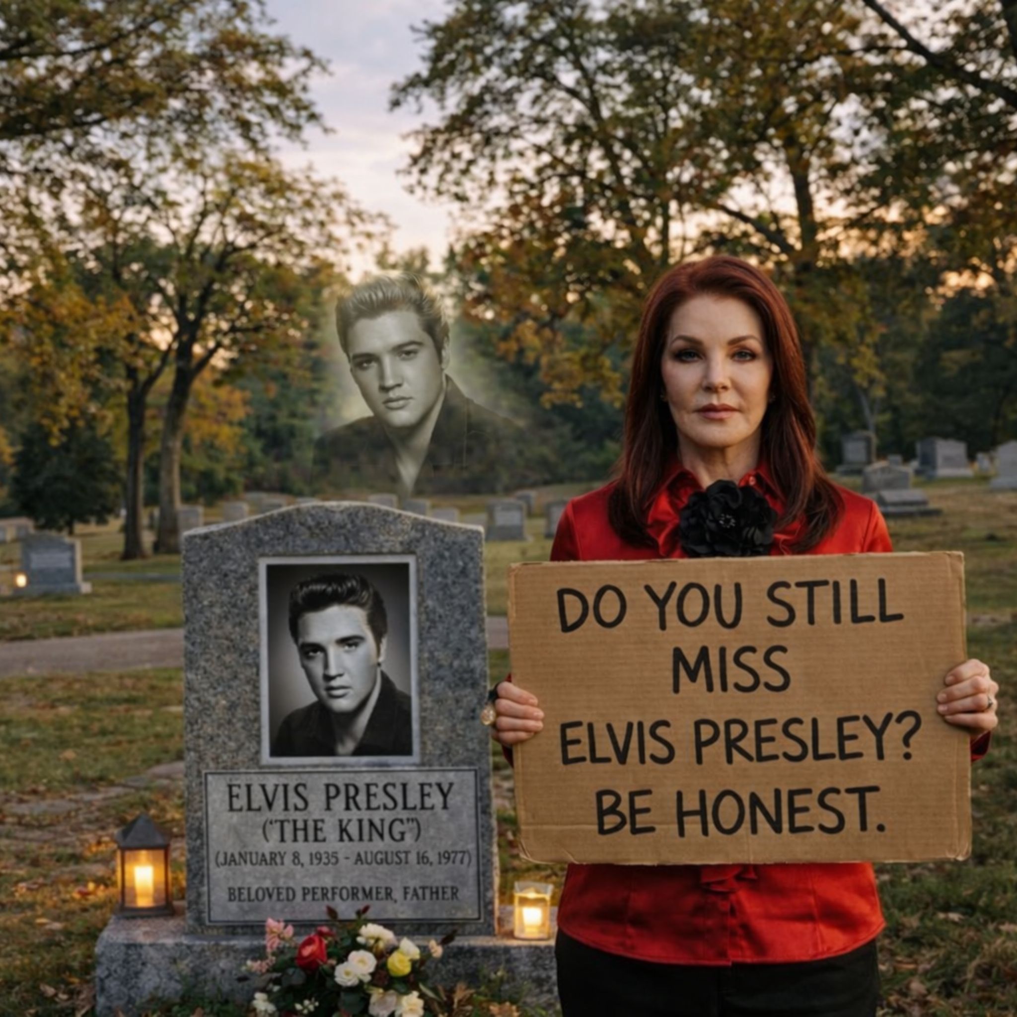 And perhaps that is the deepest truth in this image. Elvis Presley remains one of the loudest echoes in American culture, a voice that still refuses to leave the room. Yet here, at sunset, what honors him most is not sound, but silence. Not fame, but memory. Not a performance, but presence. In the end, the moment does not ask us to look at celebrity. It asks us to look at devotion made quiet by time. And in that silence, Priscilla’s goodbye becomes something more than personal. It becomes a reminder that the loudest tribute is sometimes nothing more—and nothing less—than a life remembered softly, at sunset.