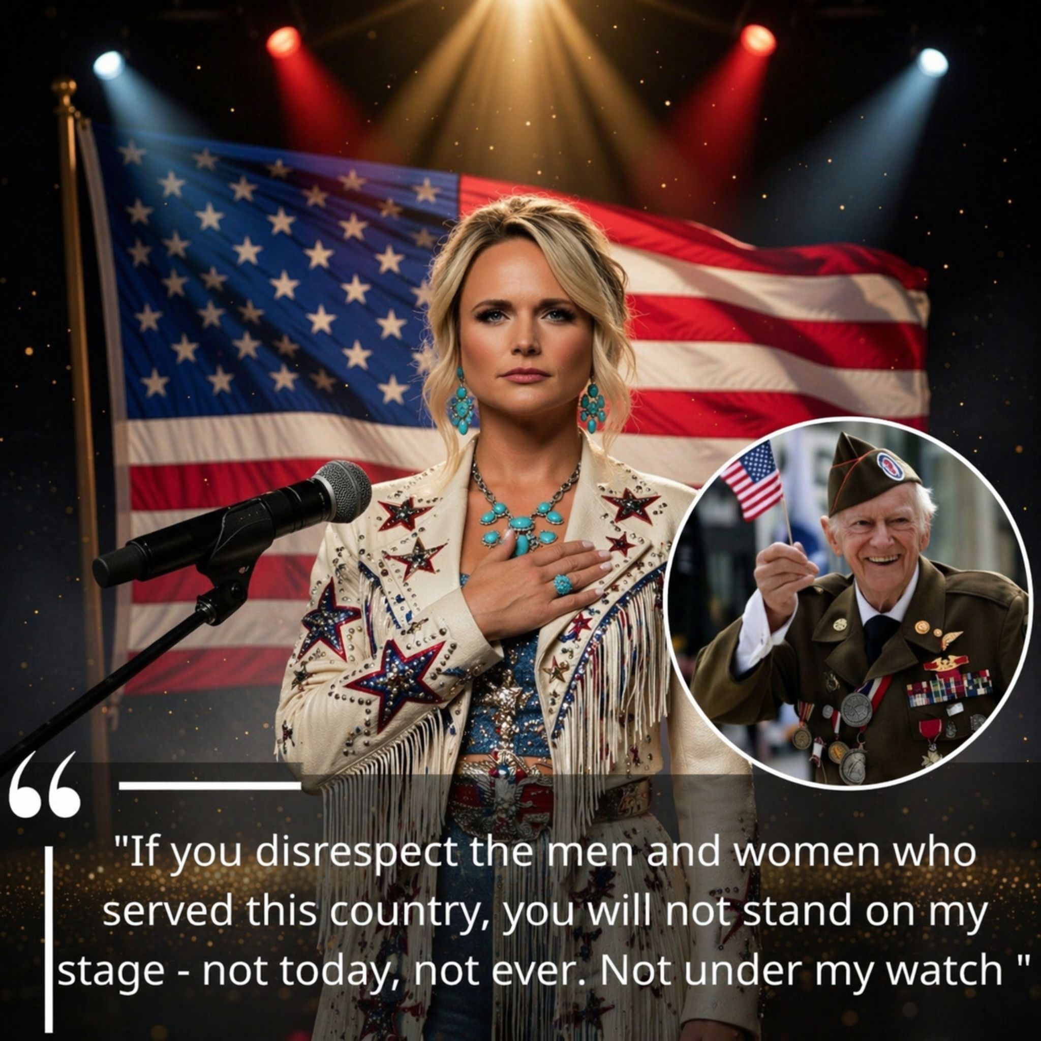 That is the emotional force behind “I DON’T CARE WHO YOU ARE — YOU DON’T DISRESPECT THE PEOPLE WHO SERVED THIS COUNTRY.” — MIRANDA LAMBERT JUST SHUT DOWN HIS OWN SHOW.🇺🇸🇺🇸🇺🇸 It reads like the kind of moment that instantly stops people in their tracks, not because it is loud, but because it touches a value older than celebrity itself: respect. In country music, audiences can forgive a lot. They can forgive rough edges, hard opinions, strong tempers, and imperfect nights. But for many older listeners, one thing still matters above almost everything else — how a person treats those who earned honor long before the spotlight ever found them.